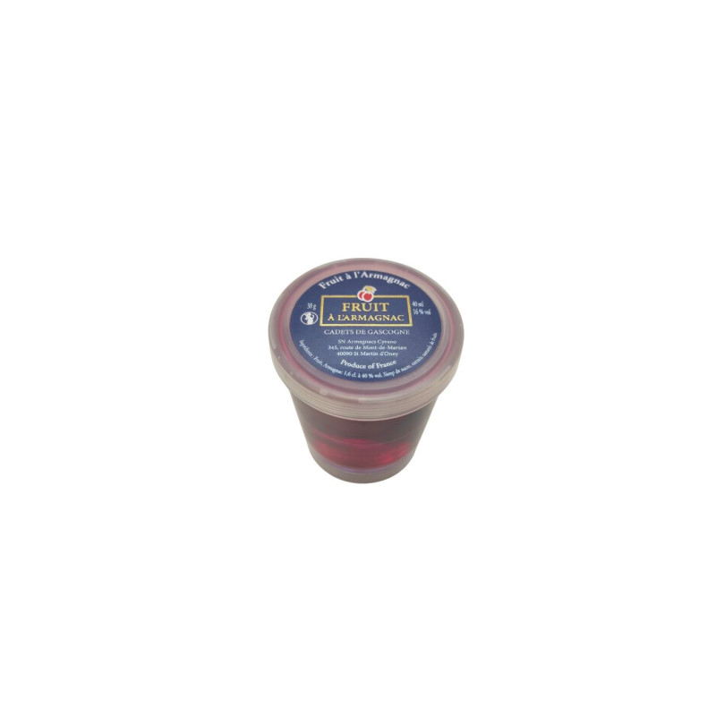 Les griottes apportent des notes intenses et charnues, entre fruit mûr et pointe acidulée. L’armagnac jeune s’exprime avec vivacité, offrant un équilibre net et frais porté par le fruit.